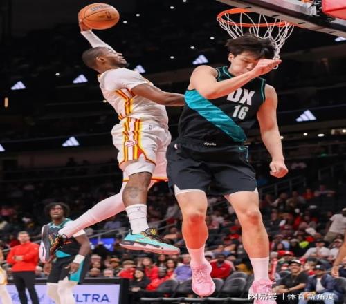 一快速反擊的時候,他像踩了彈簧一樣墊步起飛,單臂來了個超級大風(fēng)車暴扣,那架勢,仿佛要把籃筐都給扯下來;另一記更猛,底線接球后,他原地“嗖”地一下迅猛騰空,左手狠狠地砸扣在楊瀚森頭上,那場面,簡直霸氣側(cè)漏!