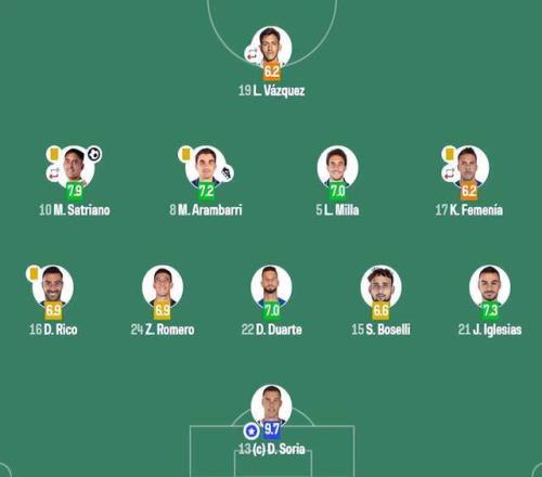 第39分鐘,赫塔費右路進攻,伊格萊西亞斯傳中被呂迪格解圍不遠,阿蘭巴里和瓊阿梅尼爭頂做球,薩特里亞諾直接凌空爆射入網(wǎng)。1比0,這個進球最終成為全場比賽的唯一進球。