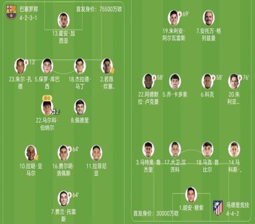 弗里克派上費蘭-托雷斯,亞馬爾、費爾明和拉菲尼亞組成進攻群,西蒙尼派出阿爾瓦雷斯和格列茲曼雙前鋒。