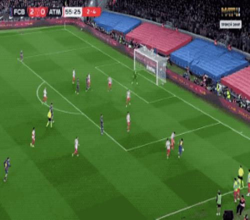 第41分鐘,雖小西蒙尼助攻格列茲曼轟門擊中立柱,但他越位在先,這也是馬競上半場僅有的一次亮眼射門。