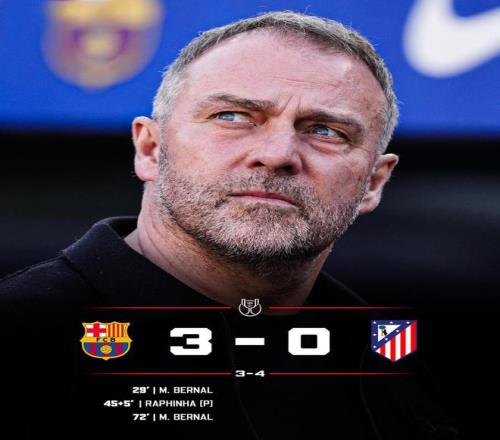 隨后藍(lán)紅軍團(tuán)的攻勢更猛,先是亞馬爾在禁區(qū)內(nèi)倒地,裁判沒有給點(diǎn);隨后拉什福德回敲,赫拉德-馬丁怒射擦橫梁而出,最終比分定格在巴薩3-0馬競,藍(lán)紅軍團(tuán)雖贏下比賽,卻輸?shù)粝盗匈???偙确?-4,止步半決賽,衛(wèi)冕夢想破滅。