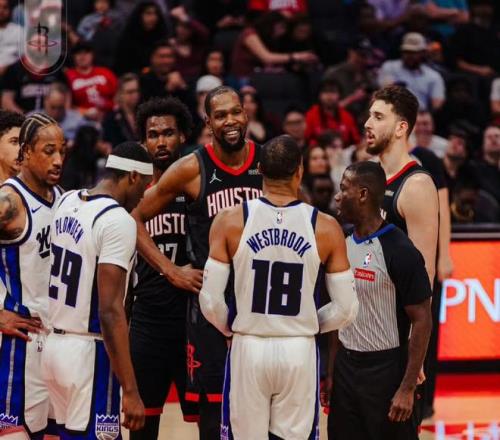 國王本場(chǎng)比賽其實(shí)發(fā)揮得并不差。威少一上來就火力全開,面對(duì)大哥杜蘭特真有加成。首節(jié)11投8中狂砍17分,包括一個(gè)2+1,氣勢(shì)洶洶要咬碎火箭。但謝潑德很快站了出來,用精準(zhǔn)的外線回應(yīng)國王的攻勢(shì)。之后火箭迅速祭出申京與謝潑德的擋拆配合,重現(xiàn)了經(jīng)典的“15號(hào)位”起手式,首節(jié)結(jié)束時(shí)火箭已經(jīng)以33比22領(lǐng)先11分。第二節(jié),謝潑德的手感徹底爆發(fā),三分線外接連命中,火箭一度將分差拉大到27分。下半場(chǎng)國王試圖反撲,最多追到只差18分,但謝潑德和杜蘭特立刻聯(lián)手打出高潮回應(yīng),分差重回30分,比賽早早進(jìn)入垃圾時(shí)間。謝潑德全場(chǎng)21投9中,砍下28分3籃板2助攻,其中三分球15投7中,刷新了個(gè)人單場(chǎng)三分紀(jì)錄。