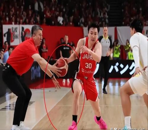 探入場(chǎng)內(nèi)的手部與日本后衛(wèi)富永啟生運(yùn)的球發(fā)生了極其輕微的接觸,導(dǎo)致球出界。
