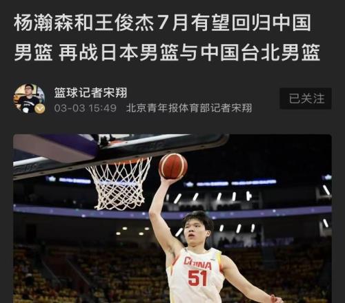 就在今晚,中國男籃傳來第三大好消息!不止楊瀚森、王俊杰或歸隊(duì)