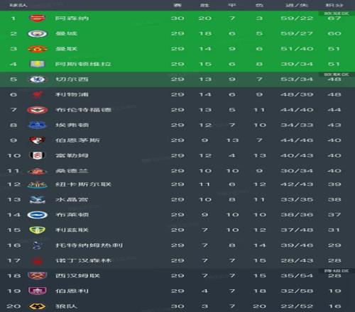 英超最新積分榜