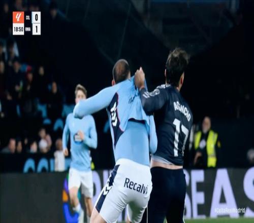第71分鐘,比賽爭議的一幕出現,尤特格拉禁區(qū)明顯的手球,但是裁判認為楚阿梅尼推搡在先,因此拒絕吹罰點球。第87分鐘,塞爾塔快速發(fā)動反擊,替補登場的阿斯帕斯晃過阿森西奧,勁射遠角擊中橫梁彈出!皇馬逃過一劫。補時階段的最后一分鐘,巴爾韋德禁區(qū)外的一腳勁射,擊中對手產生折射破門,2:1!皇馬完成絕殺!