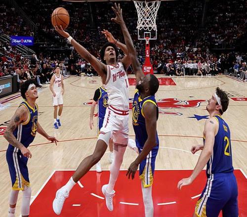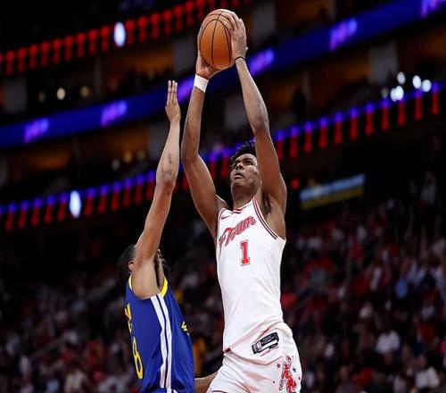 本場(chǎng)比賽中,看起來(lái)火箭的先發(fā)控衛(wèi)阿門-湯普森(Amen Thompson)打出了不錯(cuò)的數(shù)據(jù),實(shí)際上他的表現(xiàn)是非常一般的。阿門全場(chǎng)出場(chǎng)43分30秒,投籃15中8,三分線外2中1,罰球2中1,得到了18分10籃板5助攻4搶斷的兩雙數(shù)據(jù),其中還包括了7個(gè)前場(chǎng)籃板,還有1次失誤和1次犯規(guī),正負(fù)值為+6。阿門在前后場(chǎng)籃板爭(zhēng)搶以及防守方面的表現(xiàn)都是值得肯定的,他搶到了大量的前后場(chǎng)籃板,他也有著很高的防守侵略性,他也利用轉(zhuǎn)換進(jìn)攻拿到了不少分?jǐn)?shù)。然而另一方面,阿門作為一名控衛(wèi),沒有基本的傳球和組織能力,而且他的技術(shù)非常粗糙,并不能在進(jìn)攻端完成稍微復(fù)雜一些的得分,他在進(jìn)攻端的功能其實(shí)是非常單一的,完完全全就是一個(gè)輔助型球員的樣子,他在進(jìn)攻端對(duì)于球隊(duì)空間的負(fù)面影響也是肉眼可見的。