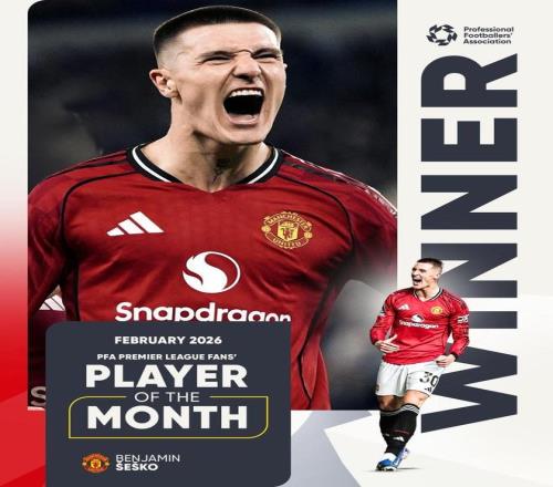 北京時間3月10日,英格蘭職業(yè)球員協(xié)會PFA官方宣布,曼聯(lián)前鋒謝什科當(dāng)選由他們評出的英超2月最佳球員。
