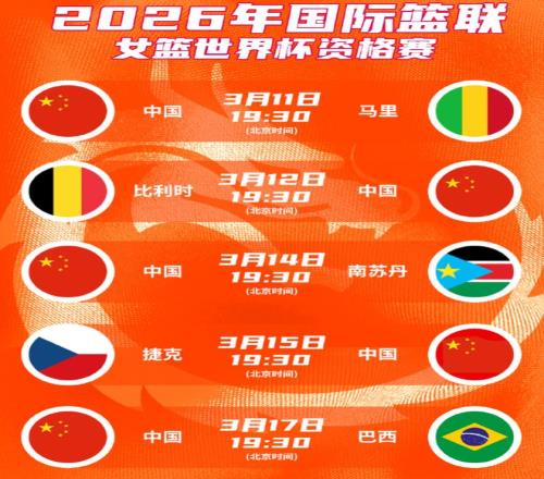 中國女籃世預(yù)賽賽程出爐:七天5賽,PK五大對手