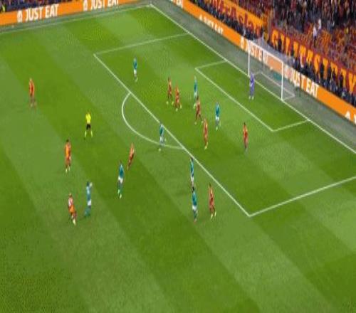 第7分鐘,奧斯梅恩頭球擺渡,勒米納頭球接力破門,加拉塔薩雷1-0利物浦