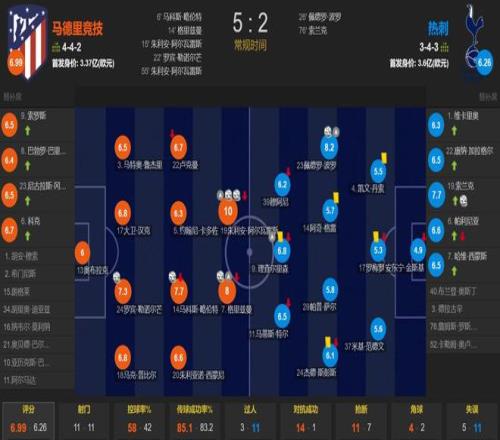 上半場(chǎng),熱刺二號(hào)門(mén)將金斯基連續(xù)2次送大禮后被1號(hào)門(mén)將維卡里奧換下,阿爾瓦雷斯助攻略倫特推射打破場(chǎng)上僵局,隨后格列茲曼、阿爾瓦雷斯、勒諾爾芒先后破門(mén)擴(kuò)大比分,波羅扳回一城,半場(chǎng)馬競(jìng)4-1領(lǐng)先;下半場(chǎng),格列茲曼助攻阿爾瓦雷斯破門(mén)鎖定勝局,波羅助攻索蘭克破門(mén)。