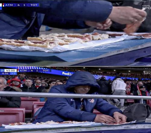 北京時(shí)間3月11日,歐冠聯(lián)賽1/8決賽首回合,馬德里競(jìng)技在大都會(huì)球場(chǎng)5-2大勝托特納姆熱刺。在比賽上半場(chǎng)即將結(jié)束時(shí),一名馬競(jìng)球迷在看臺(tái)上悠閑地制作三明治,被官方轉(zhuǎn)播鏡頭實(shí)時(shí)記錄了下來(lái)。