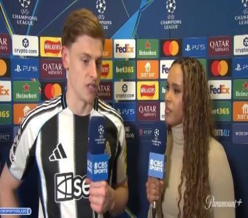 歐冠1/8決賽首回合,紐卡主場1-1戰(zhàn)平巴薩,紐卡前鋒哈維-巴恩斯賽后接受了CBS體育的采訪。