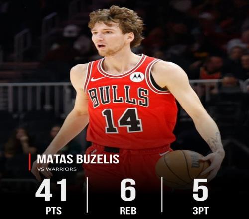 全場比賽布澤利斯45分鐘,28中16,三分15中5,罰球5中4,拿到41分6籃板2助攻2搶斷2蓋帽,命中率57.1%,三分命中率33.3%,他也一戰(zhàn)創(chuàng)造多項(xiàng)紀(jì)錄。