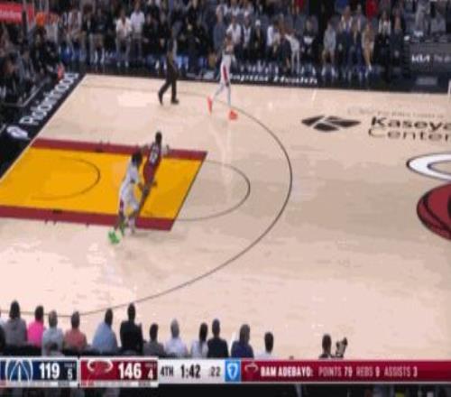 事實上,在這場比賽的上半場,阿德巴約就展現(xiàn)出了火熱的手感。首節(jié)比賽,他一個人都得到31分,超越了奇才全隊的29分。雖然第二節(jié)比賽,阿德巴約的進攻勢頭有所減緩,但依舊得到了12分。半場43分的個人表現(xiàn),也讓下半場的比賽局勢出現(xiàn)了微妙的變化,熱火球員明顯將更多得分機會交給了阿德巴約,而阿德巴約也通過內(nèi)線強打制造犯規(guī),第三節(jié)他又轟下19分,其中13次站上罰球線。