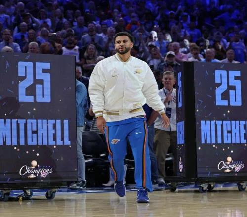 數(shù)據(jù)更能說明問題:米切爾在場時,雷霆百回合凈勝16.0分;他不在場,凈勝7.5分。8.5分的差距,對于一支爭冠球隊來說,是替補深度最重要的體現(xiàn)。