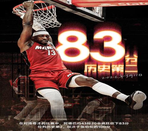 本場比賽阿德巴約全場砍下83分9籃板3助攻2蓋帽的逆天數(shù)據(jù),全場43投22中,三分22中7,罰球43中36,成功超越科比,獨享歷史第二!如果排除上古巨獸張伯倫的100分(1962年的NBA比賽節(jié)奏快,單場比賽平均回合數(shù)為131次,而當(dāng)代籃球回合數(shù)基本在80-100次,當(dāng)時張大帥自己出手就63次),阿德巴約坐穩(wěn)現(xiàn)代籃球歷史第一!