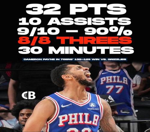 4.他是費(fèi)城隊(duì)史首位替補(bǔ)30+10+8三分(三分8中8)的首人;