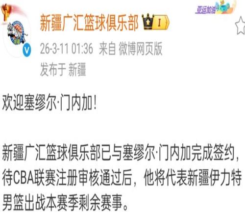 新疆男籃本賽季成績不理想,外援不給力是主要原因,由于吳冠希賽季報(bào)銷,李炎哲狀態(tài)低迷,所以新疆男籃在窗口期選擇了補(bǔ)充大外援,通過選擇,最終和新西蘭內(nèi)線門內(nèi)加完成了簽約。