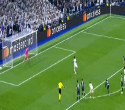 第75分鐘,皮塔奇后場護球失誤,奧賴利近距離捅射,庫爾圖瓦逆天反應,伸腿將球擋出,皇馬逃過一劫。