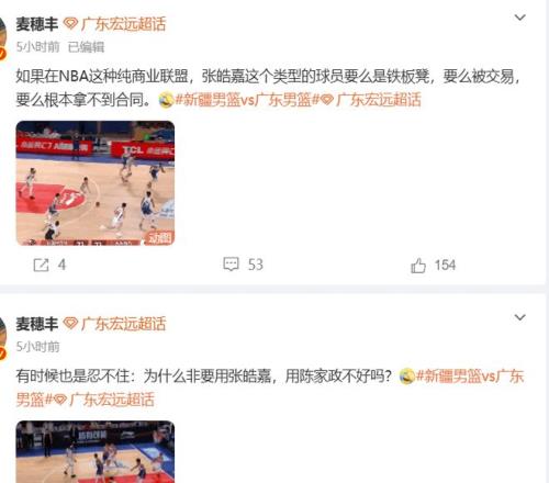 其中,要說罵的最狠的,還得是媒體人麥穗豐,看到張皓嘉在比賽期間的多次災(zāi)難性表現(xiàn),一向支持廣東隊(duì)的麥穗豐也忍不住發(fā)文嘲諷,表示:如果在NBA這種純商業(yè)聯(lián)盟,張皓嘉這個(gè)類型的球員要么是鐵板凳,要么被交易,要么根本拿不到合同。