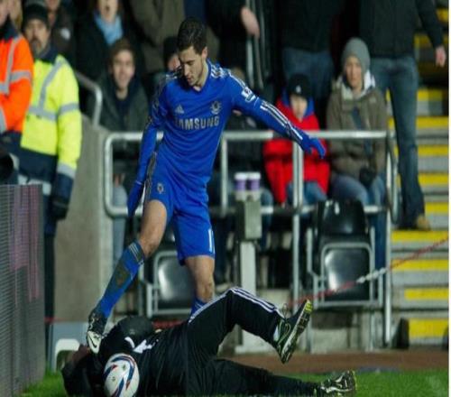 當時比利時人在聯(lián)賽杯半決賽落后時踢倒斯旺西球童,直接被紅牌罰下并停賽三場。