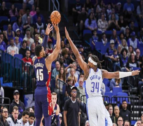 第二節(jié)雙方輪換陣容階段,騎士上來開始反擊,莫布里籃下2+1打成實現(xiàn)反超。貝恩兩罰兩中以后,莫布里籃下扣籃吃餅打停魔術(shù)?;氐奖荣?,魔術(shù)又將分差拉開到了5分,哈登造犯規(guī)罰球止血。但魔術(shù)再次一波小高潮,班凱羅三分命中領(lǐng)先到了7分,哈登歐洲步上籃打進,埃利斯外線三分命中,米切爾籃下拋投還有,但莫布里對班凱羅三分犯規(guī)。米切爾和哈登連得4分,半場雙方戰(zhàn)成62平。