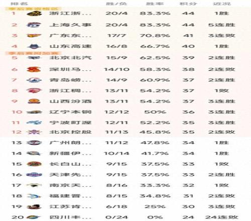 隨著廣東2分憾負(fù),上海5連勝,CBA最新排名出爐!北京兩連勝排第5