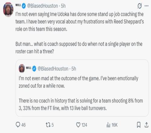 休媒:火箭球員在比賽中毫無(wú)樂(lè)趣可言,這才是他們面臨的主要問(wèn)題之一。