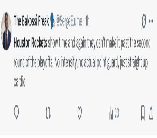 美記:火箭一次又一次的證明了他們無(wú)法再季后賽中走得更遠(yuǎn),整支球隊(duì)缺乏激情,沒(méi)有出色的控球后衛(wèi),只是單純的拖體能罷了。