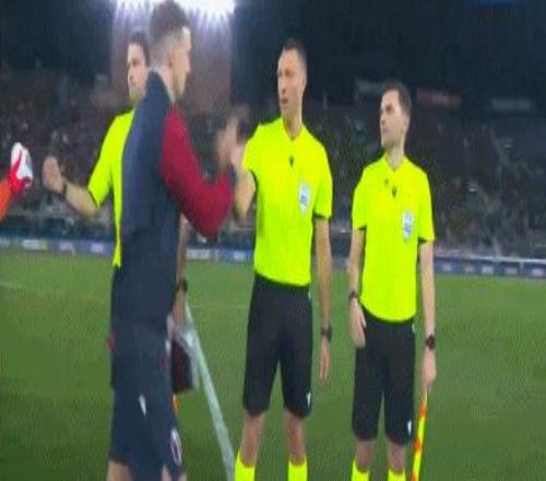 第56分鐘,卡薩萊從后絆倒馬倫,裁判出示黃牌