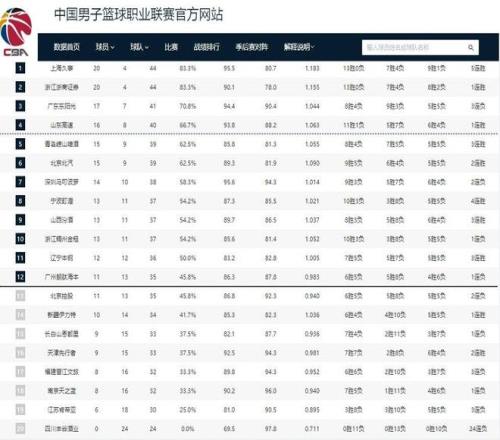 CBA排名更新!廣東三連敗北京大勝,上海榮登榜首,山東位居四強(qiáng)