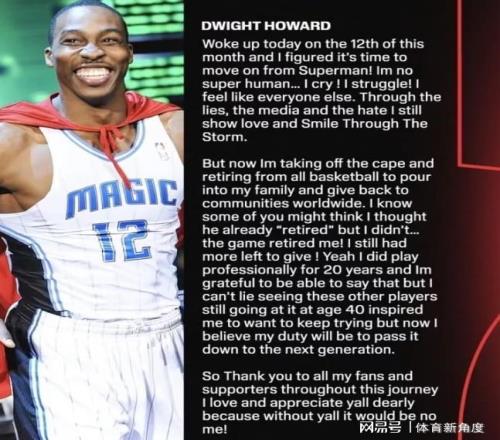 但無論如何,僅從球場表現(xiàn)來看,霍華德絕對稱得上是一位偉大的球員。在巔峰時期,他無疑是NBA無可爭議的第一中鋒,也被譽為NBA歷史上最后一位傳統(tǒng)意義上的超級大中鋒。如今,讓我們共同祝福“魔獸”霍華德,希望他在翻開人生新篇章之后,依舊能夠在新的領(lǐng)域發(fā)光發(fā)熱,續(xù)寫屬于自己的輝煌。