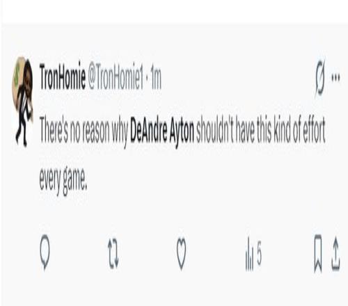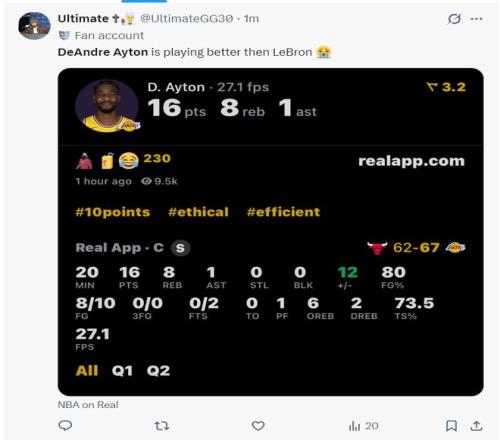 首節(jié)艾頓2中2,上半場20分鐘,10中8,拿到16分8籃板1搶斷0失誤,命中率80%,正負值+12,艾頓在籃下是予取予求。湖人媒體直言艾頓上半場的表現(xiàn)比勒布朗好得多。