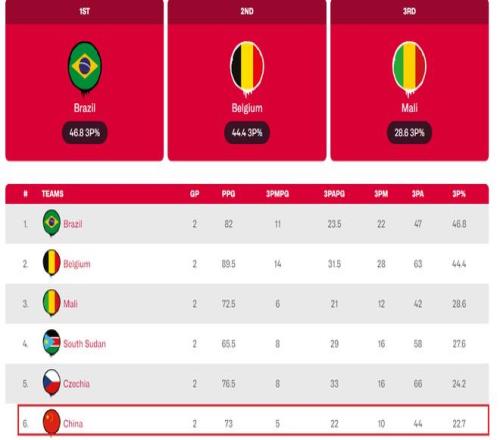 在A組的6支球隊(duì)當(dāng)中,中國(guó)女籃前兩戰(zhàn)的三分命中數(shù)和三分命中率都排名倒數(shù)第一。雖然中國(guó)女籃擁有世界級(jí)的內(nèi)線(xiàn)——李月汝、韓旭和張子宇。但是中國(guó)女籃的三分球成為了非常嚴(yán)重的短板。