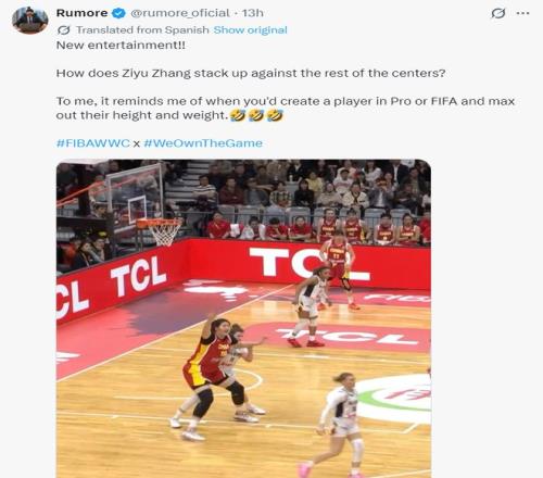 賽后張子宇的表現(xiàn)引發(fā)了全世界的媒體熱議,短短18分43秒,15中10,拿到20分11籃板5失誤,命中率69.6%,張子宇在內(nèi)線就是予取予求的存在。