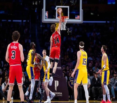 次節(jié)較量,里夫斯與河村勇輝對射三分球,詹姆斯失誤,河村勇輝助攻布澤利斯暴扣。詹姆斯助攻艾頓扣籃,詹姆斯上籃不中,艾頓補籃取分,公牛請求暫停。詹姆斯跳投不進,艾頓2罰不中,布澤利斯外線取分。艾頓完成補扣,迪林厄姆、理查茲、特雷瓊斯相繼籃下得手,里夫斯單打命中為湖人止血。特雷瓊斯拋投命中,里夫斯與迪林厄姆在中遠距離斗法。