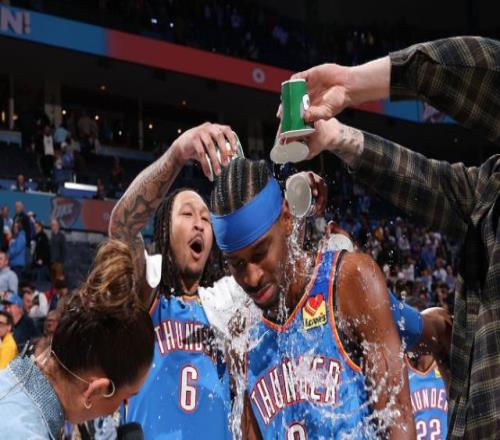 比賽結(jié)束,亞歷山大被現(xiàn)場記者拉到場邊采訪,隊友們紛紛往亞歷山大頭上澆水,一杯又一杯。亞歷山大做出了一副生無可戀的模樣,隨后調(diào)侃道:“別擔心,他們會承擔后果的。”當然,這只是玩笑話,這是NBA傳統(tǒng)的慶祝球員取得里程碑時刻的方式,不會影響隊友之間的關(guān)系。