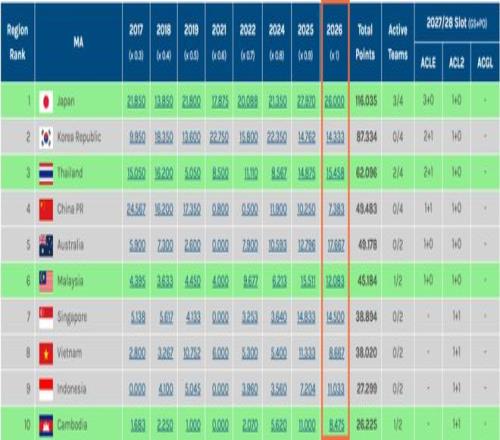 近日,2025/26賽季亞冠精英聯(lián)賽東亞區(qū)四強(町田澤維亞、神戶勝利船、柔佛新山、武里南聯(lián))、亞冠二級聯(lián)賽東亞區(qū)雙雄(大阪鋼巴、曼谷聯(lián))、亞洲挑戰(zhàn)者聯(lián)賽東亞區(qū)雙雄(馬尼拉挖掘者、柴楨)全部決出。隨著柬埔寨球隊柴楨闖入亞挑聯(lián)半決賽,本賽季中超亞冠技術積分已經(jīng)被柬埔寨超越。
