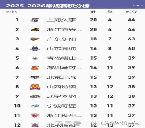 CBA積分榜最新排名出爐!廣東終結(jié)連敗穩(wěn)居第3:上海第1遼寧第9