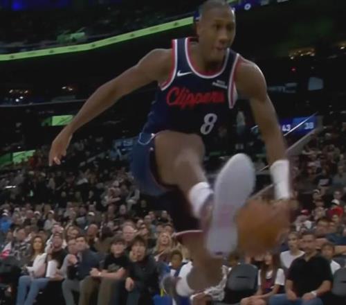 我喜歡這支快船的活力,這跟賽季初老登遍地的暮氣沉沉不同,這在團隊防守和快攻中很有意義。面斷大師鄧恩,扣籃王小瓊斯,他們或逼促著持球人,或旁敲側(cè)擊地搞偷襲,讓進攻方一刻不得安寧。他們無處不在,甚至積極性溢出了屏幕,以至于下面這次底線救球都救出了MJ胯下扣籃的既視感。