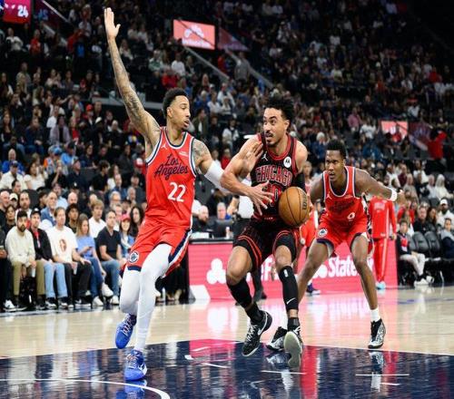 末節(jié)初段,快船一波5-0的小高潮領(lǐng)先到了12分,馬瑟林反擊暴扣打停公牛?;氐奖荣悾p方各自站上罰球線。理查茲前場籃板補扣,然后又兩罰兩中,公牛追到只差6分。但快船這邊一波7-0重新拉開,基迪三分止血,瓊斯上籃打進,快船喊停。小卡和米勒站出來連續(xù)得分,布澤里斯三分命中,但快船依舊保持著10分左右的領(lǐng)先優(yōu)勢。公牛雖然還在追分,但時間不夠了。馬瑟林罰球殺死比賽。