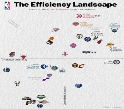 觀察最近10場(chǎng)比賽的攻防效率圖,不難發(fā)現(xiàn)湖人隊(duì)已然成為攻防兼?zhèn)涞膹?qiáng)隊(duì)。他們的進(jìn)攻效率位列第三,防守效率也躋身前11,凈效率更是高居聯(lián)盟第三。盡管湖人隊(duì)接下來(lái)的賽程略顯艱難,但球迷們?nèi)云诖麄兡軌虮3之?dāng)前狀態(tài),為季后賽做好充分準(zhǔn)備。