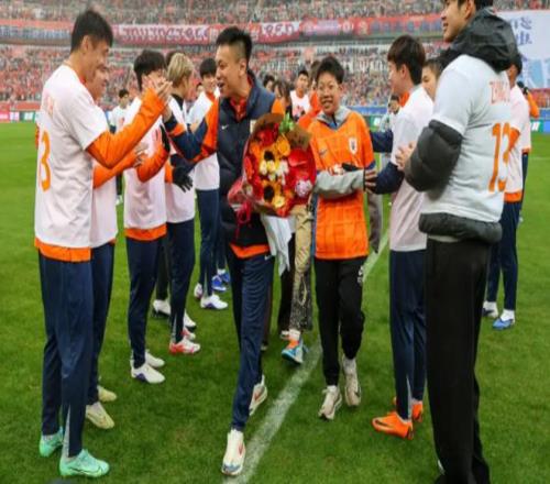 儀式現(xiàn)場,張弛的眼神堅定而溫柔,他深情地親吻隊徽,向看臺揮手致意,每一個動作都牽動著在場每一位泰山球迷的心。隊長王大雷站在隊友身邊,眼眶瞬間泛紅,淚水止不住地滑落。這淚水,是對并肩作戰(zhàn)十余載兄弟的不舍,是對張弛整個職業(yè)生涯的最高致敬,也是對“一人一城,一生忠橙”這一信仰的最好詮釋。這份跨越歲月的情誼,瞬間點燃了奧體中心的橙色信仰,為球隊的勝利奠定了最堅實的情感基石。