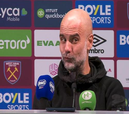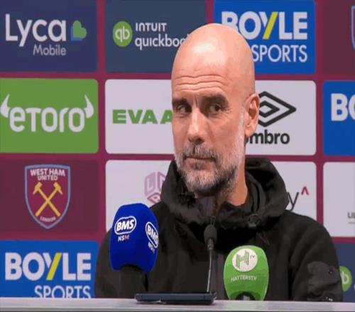 英超第30輪,曼城客場1-1戰(zhàn)平西漢姆聯(lián),賽后,曼城主帥瓜迪奧拉出席新聞發(fā)布會接受媒體提問。