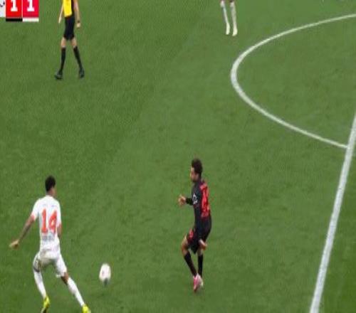 第24分鐘,奧利塞送出直傳,雅克松扣過防守后腳下打滑將球踢疵