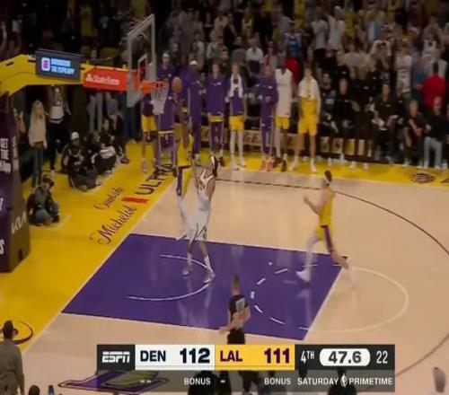 第四節(jié)比賽,掘金的三分手感徹底打開,單節(jié)15中7的三分,其中在兩側(cè)底角就進(jìn)了6個(gè)。好在湖人這邊也能續(xù)上火力,沒有徹底崩盤,里夫斯末節(jié)14分讓湖人等到了東契奇的復(fù)蘇。東契奇之后的三分+三次罰球,讓比賽重新回到同一起跑線。