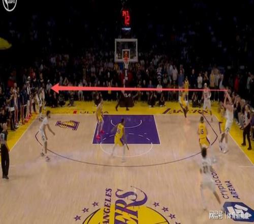 下一個(gè)回合,約基奇再次展現(xiàn)出其令人驚嘆的球場(chǎng)視野。湖人隊(duì)幾乎將全部防守資源都集中于約基奇身上,將其逼至右側(cè)邊線位置。但約基奇一記超遠(yuǎn)距離大對(duì)角傳球,精準(zhǔn)傳至底角的哈達(dá)威手中,后者命中三分,掘金隊(duì)再次反超比分。