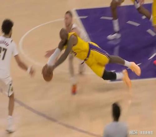 比賽進(jìn)入最后一分鐘,本場(chǎng)賽事最為動(dòng)人心弦的一幕出現(xiàn)了。掘金隊(duì)投籃未中,出現(xiàn)長(zhǎng)籃板機(jī)會(huì),位于底線的詹姆斯精準(zhǔn)預(yù)判到球的落點(diǎn)。然而,其腳步速度已不足以讓他搶到第一落點(diǎn)。但詹姆斯沒有絲毫猶豫,毅然飛身魚躍,將自己奮力擲出,在布勞恩身前成功搶到籃球。