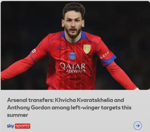 獨立報的MD率先報道了阿森納對克瓦拉茨赫利亞的興趣,現(xiàn)在天空體育也有跟進,不過天體說了,交易非常困難,球員不想轉(zhuǎn)會,巴黎更不想賣……